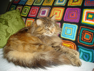 Tooticki latar sig i soffan. Det går inte att få ett foto på henne med öppna ögon, inte ens på dagtid utan blixt! Men spana in hennes vackra tassar, bamsiga! Hon börjar verkligen bli våran diva i familjen, förtjänar snart ett eget inlägg!